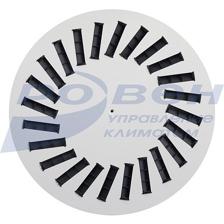 В стандартном исполнении в квадратных и круглых диффузорах типоразмеров 300/8, 400/12, 400/16, 450/16, 450/20, 500/16, 500/24 и 600/24 установка направляющих лопаток формирует на выходе вихрь, вращающийся против часовой стрелки. В типоразмере 600x48 направляющие лопатки наружного ряда формируют вихрь против часовой стрелки, а внутреннего ряда – вихрь по часовой стрелке.