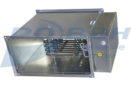 Электрические канальные воздухонагреватели (электрокалориферы) представляют собой корпус, в котором расположены трубчатые электронагреватели (ТЭН). Они создают электрическое сопротивление, которое преобразует энергию в тепло. Преимущества электрических воздухонагревателей состоят в следующем: они имеют небольшой перепад давления и они недороги в установке.
