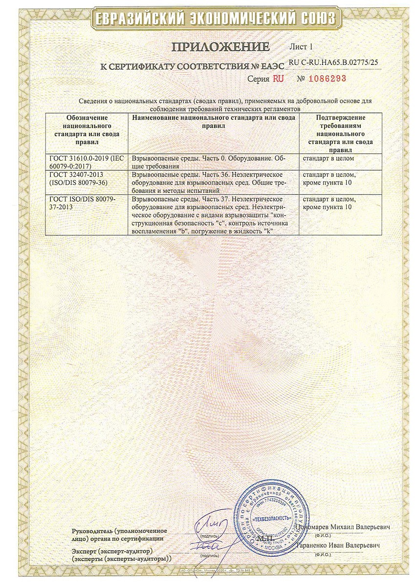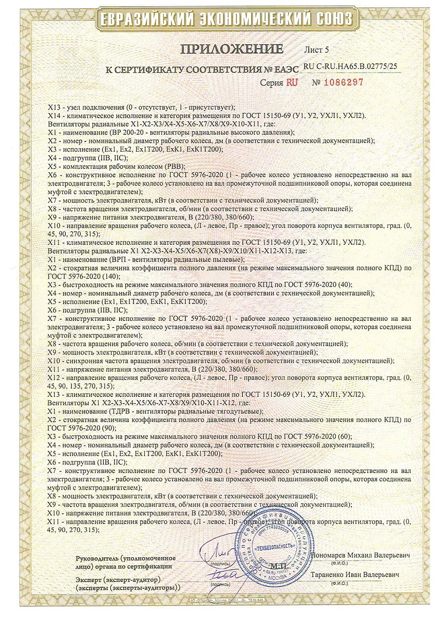 Сертификат соответствия о работе во взрывоопасных средах на взрывозащищенные вентиляторы (ТР ТС 012/2011)